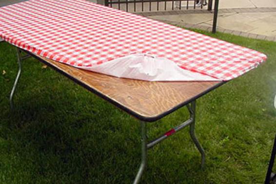The Kwik Cover is lightweight, fitted vinyl table cover with specially designed elastic edging that holds the cover in place, even in the wind. They are available in a variety of colors and sizes to fit most banquet and round tables. All banquet Kwik Covers include a 4" self-adhesive tape strip along the length of each side for added support. Kwik Covers are durable enough to be re-used, yet affordable enough to be disposed of after a single making clean-up "a snap!"